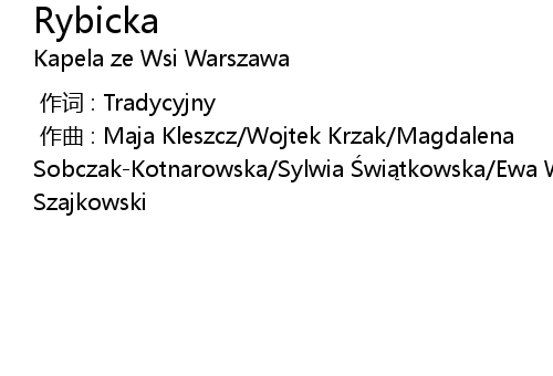| [00:00.00-1] | zuò qǔ : Maja Kleszcz Wojtek Krzak Magdalena SobczakKotnarowska Sylwia wi tkowska Ewa Wa ecka Piotr Gli ski Maciej Szajkowski |