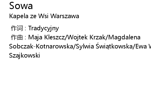 | [00:00.00-1] | zuò qǔ : Maja Kleszcz Wojtek Krzak Magdalena SobczakKotnarowska Sylwia wi tkowska Ewa Wa ecka Piotr Gli ski Maciej Szajkowski |
