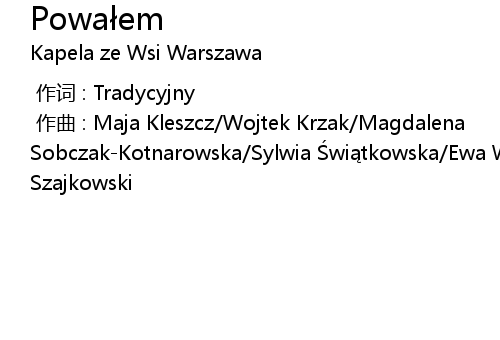 | [00:00.00-1] | zuò qǔ : Maja Kleszcz Wojtek Krzak Magdalena SobczakKotnarowska Sylwia wi tkowska Ewa Wa ecka Piotr Gli ski Maciej Szajkowski |