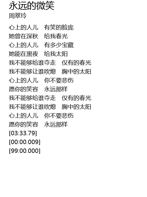 | [03:17.65] | 愿你的笑容 永远那样 |