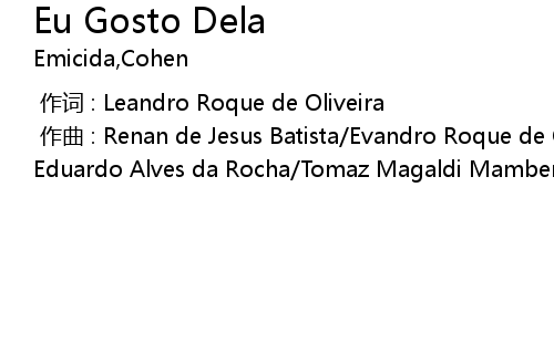 | [00:00.00-1] | zuo qu : Renan de Jesus Batista Evandro Roque de Oliveira Carlos Eduardo Alves da Rocha Tomaz Magaldi Mamberti |