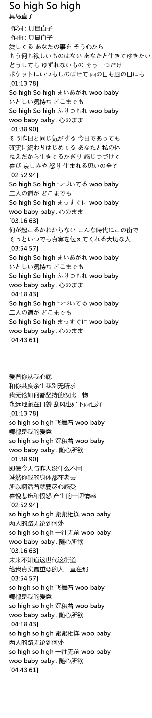 | [04:19.69] | So high So high つづいてる woo baby |