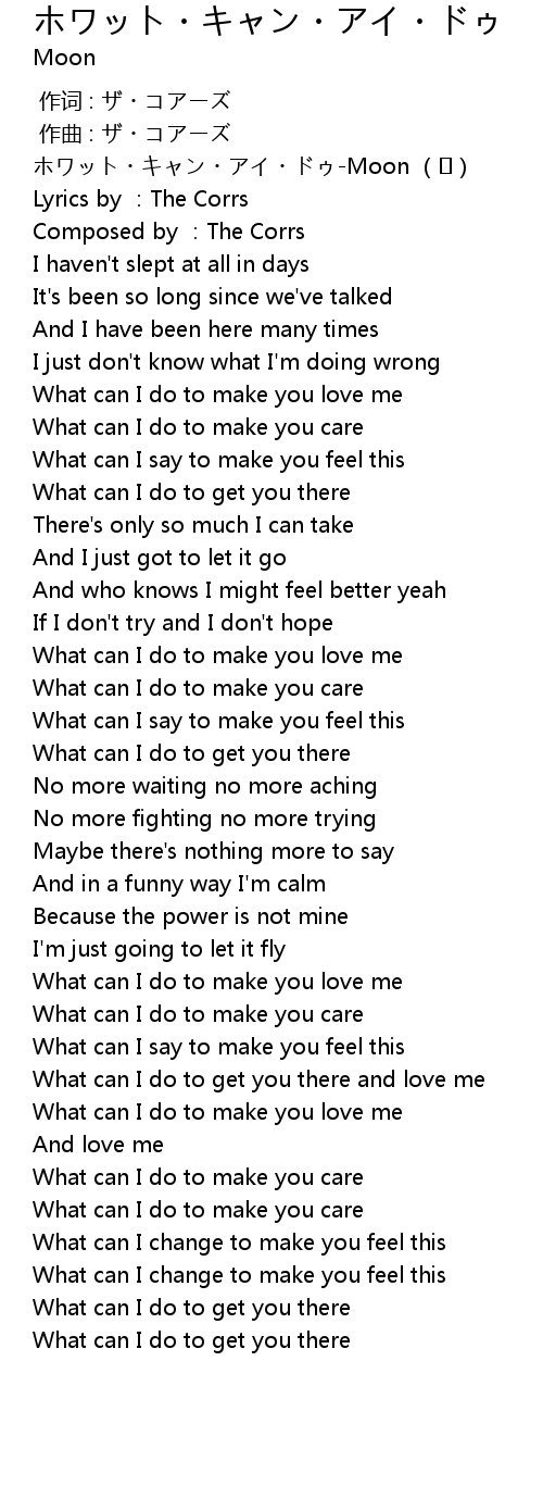 | [00:00.00] | ホワット・キャン・アイ・ドゥ-Moon (원) |