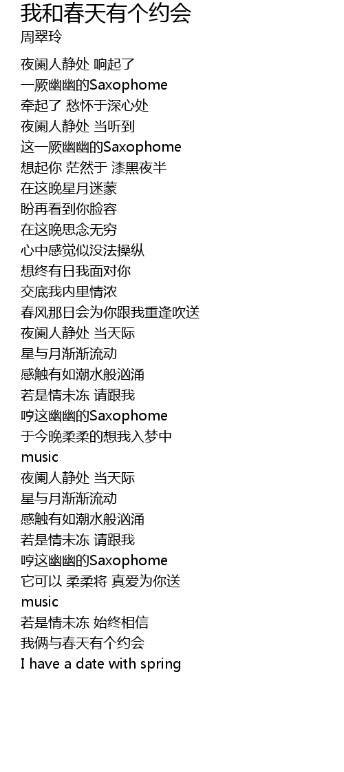 | wǒ liǎ yǔ chūn tiān yǒu gè yuē huì | |
