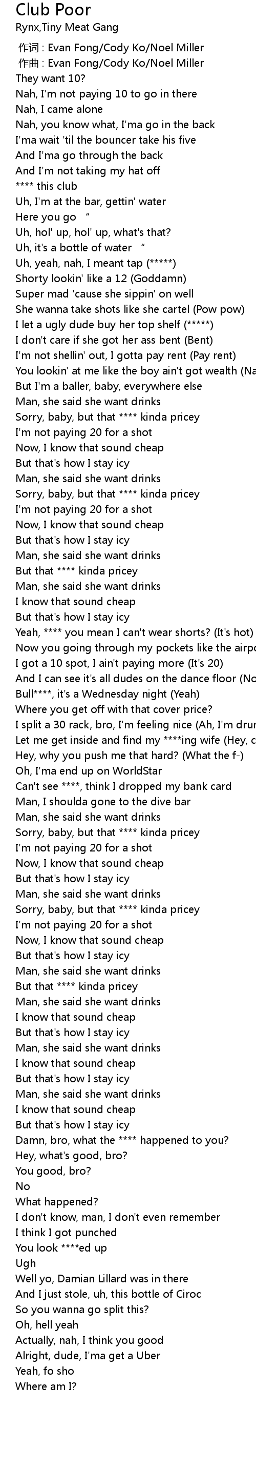 | [00:52.00] | Sorry, baby, but that **** kinda pricey |