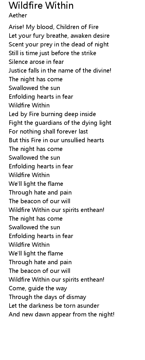 | [03:04.93] | Wildfire Within |