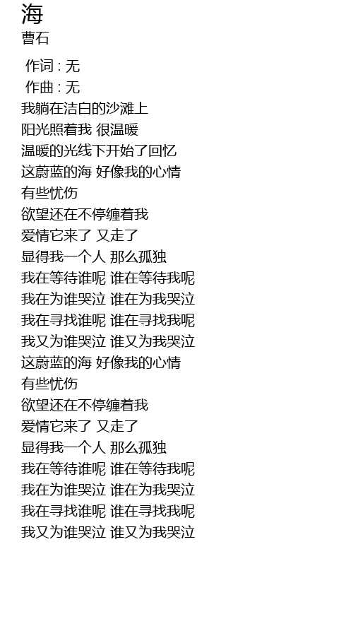 | [00:16.457] | 我躺在洁白的沙滩上 |