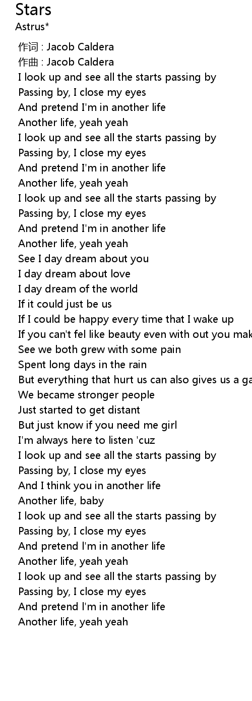 | [00:26.006] | I look up and see all the starts passing by |