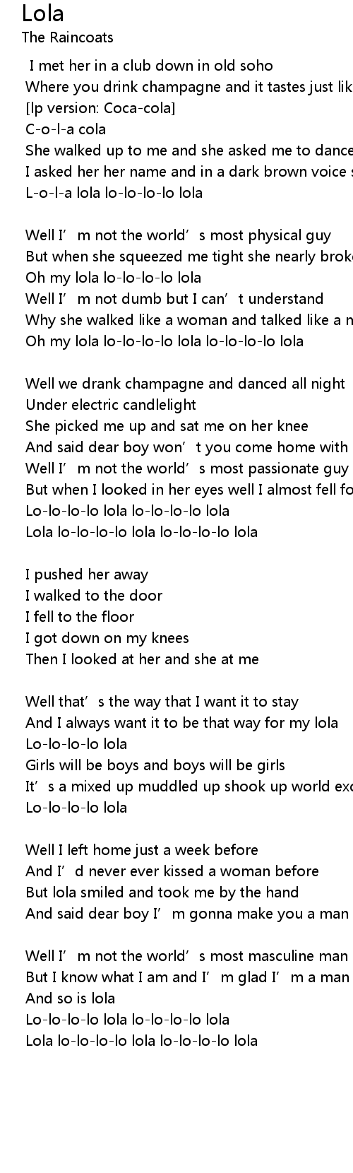 | Lola lo-lo-lo-lo lola lo-lo-lo-lo lola |