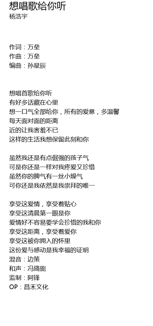 | xiǎng chàng shǒu gē gěi nǐ tīng | |