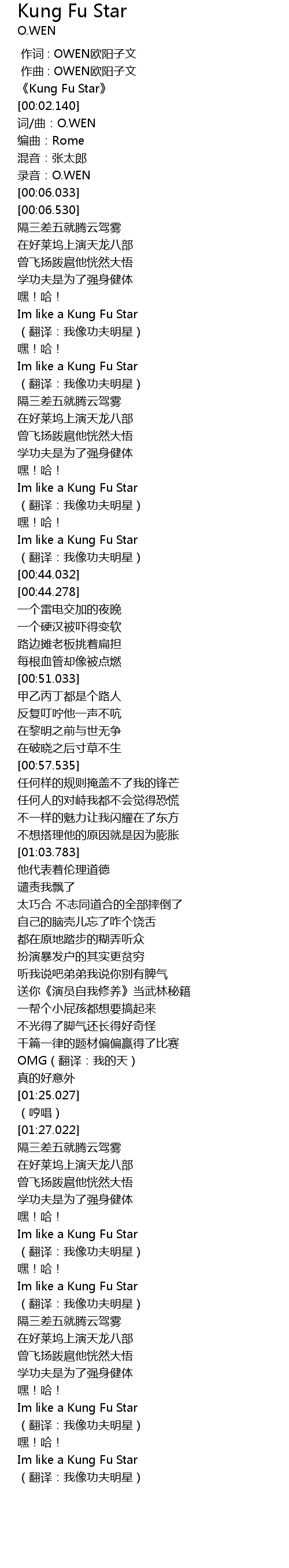 | [02:03.039] | fān yì: wǒ xiàng gōng fū míng xīng |