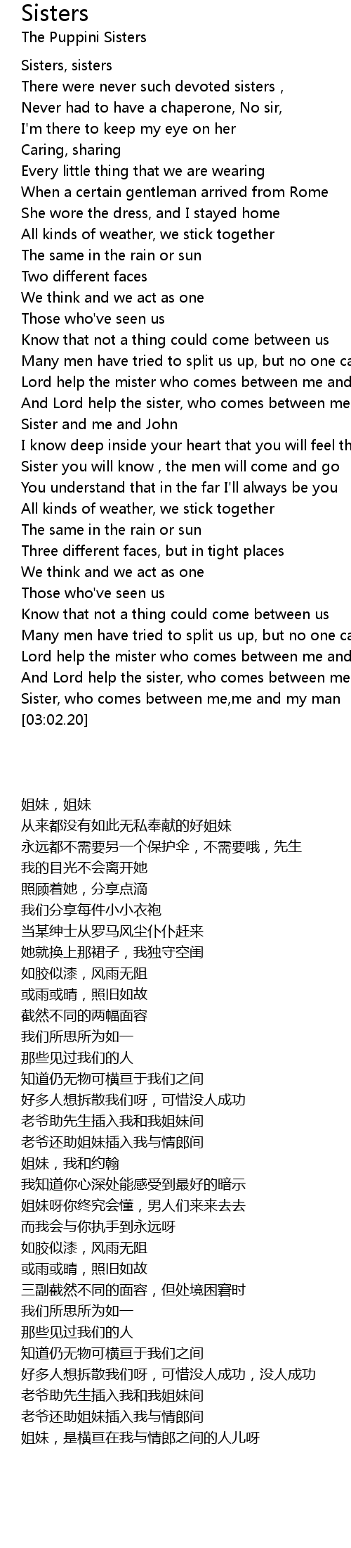 | [02:50.40] | Sister, who comes between me,me and my man |
