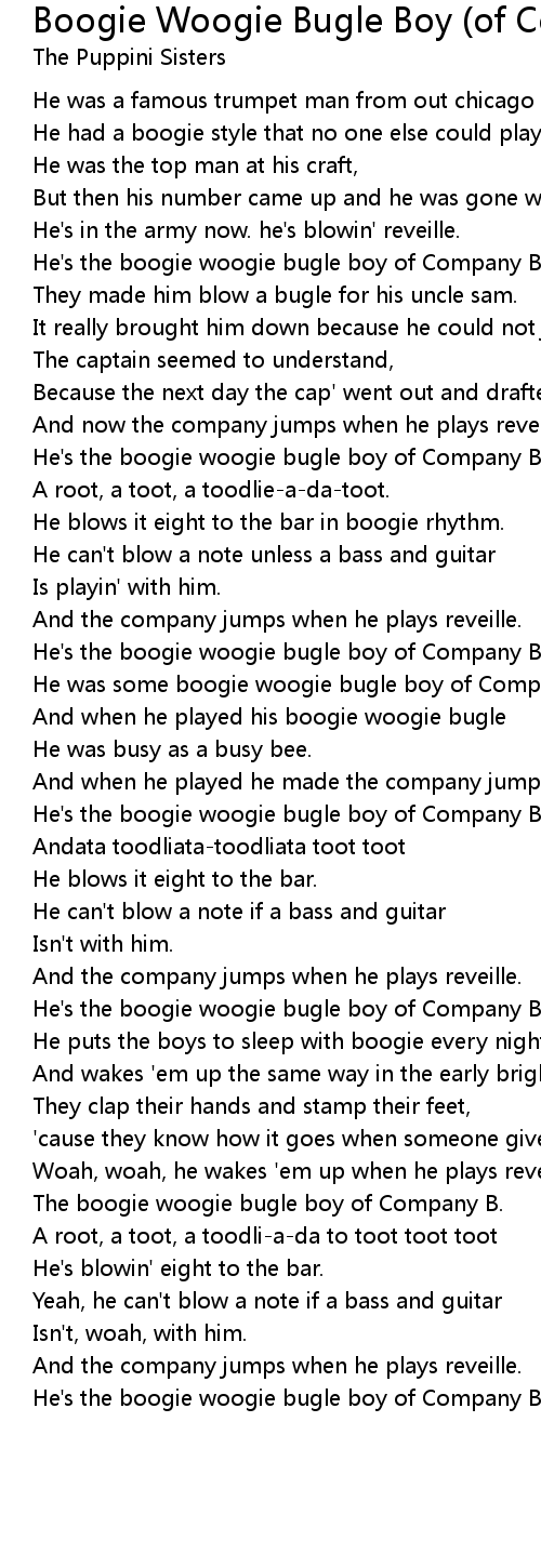 He's the boogie woogie bugle boy of Company B |
