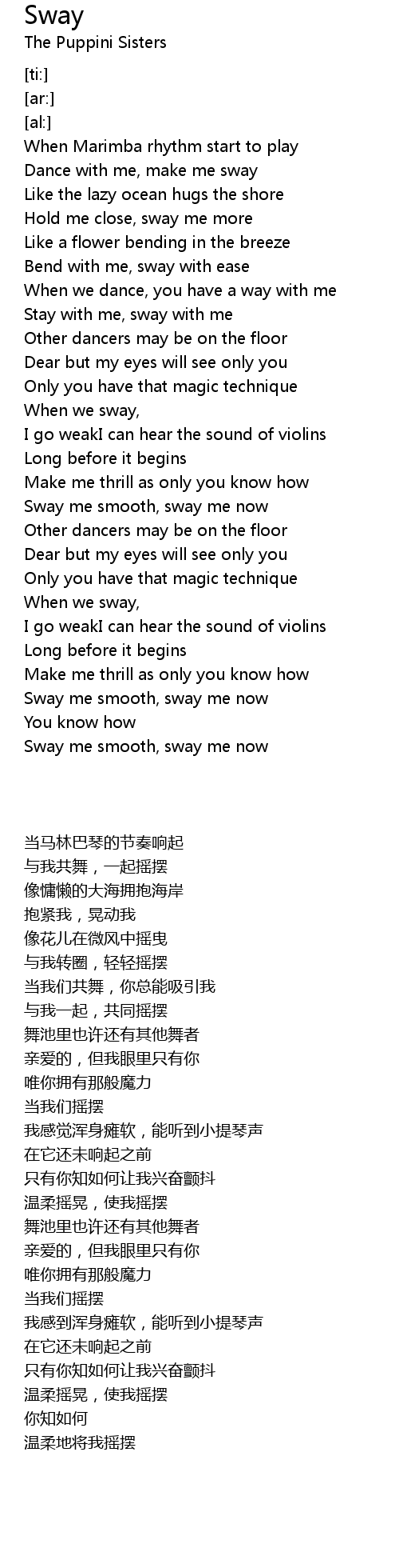 Sway me smooth, sway me now |
