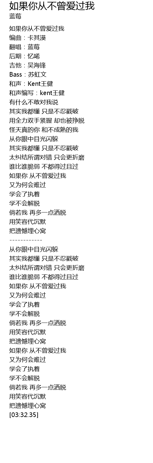 | [03:04.33] | 如果你 从不曾爱过我 |