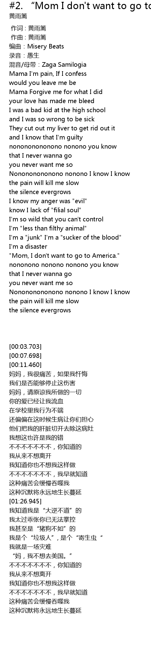 | [01:46.696] | "Mom, I don't want to go to America." |