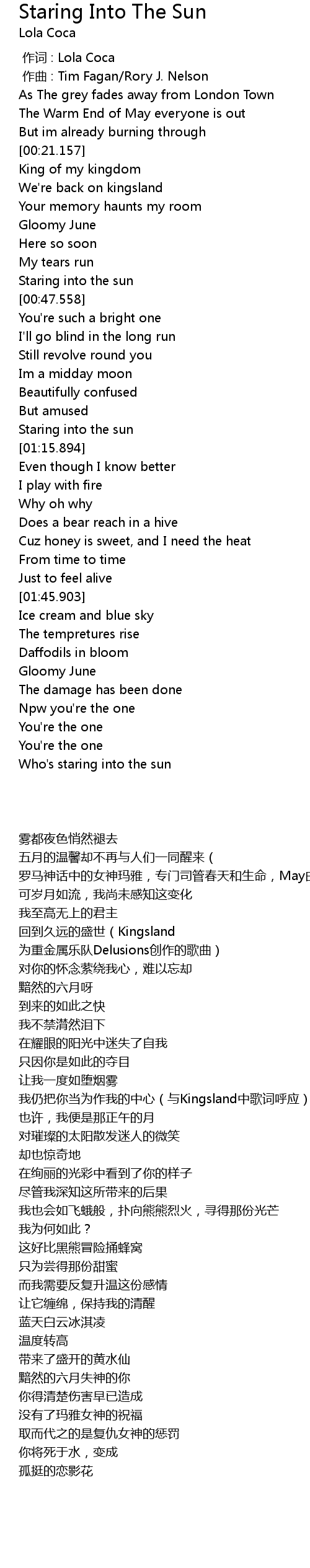 | [02:47.168] | Who' s staring into the sun |