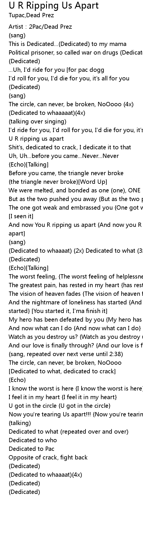| And now You R ripping us apart And now you R ripping us apart Ripping us apart | |