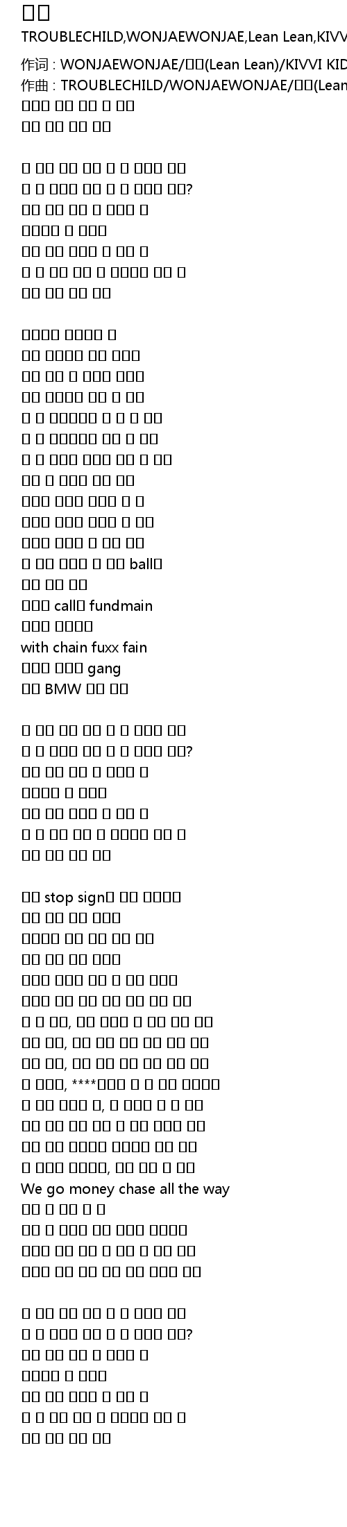 作曲 : TROUBLECHILD/WONJAEWONJAE/린린(Lean Lean)/KIVVI KID |