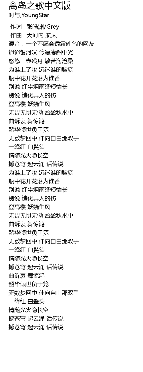 | [00:00.000] | 作词 : 张皓渊/Grey |
