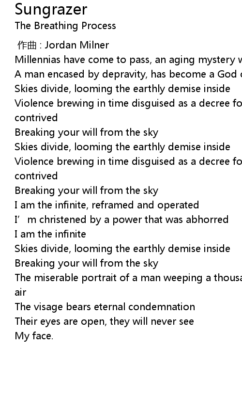 | [00:58.700] | Violence brewing in time disguised as a decree for the blind contrived |