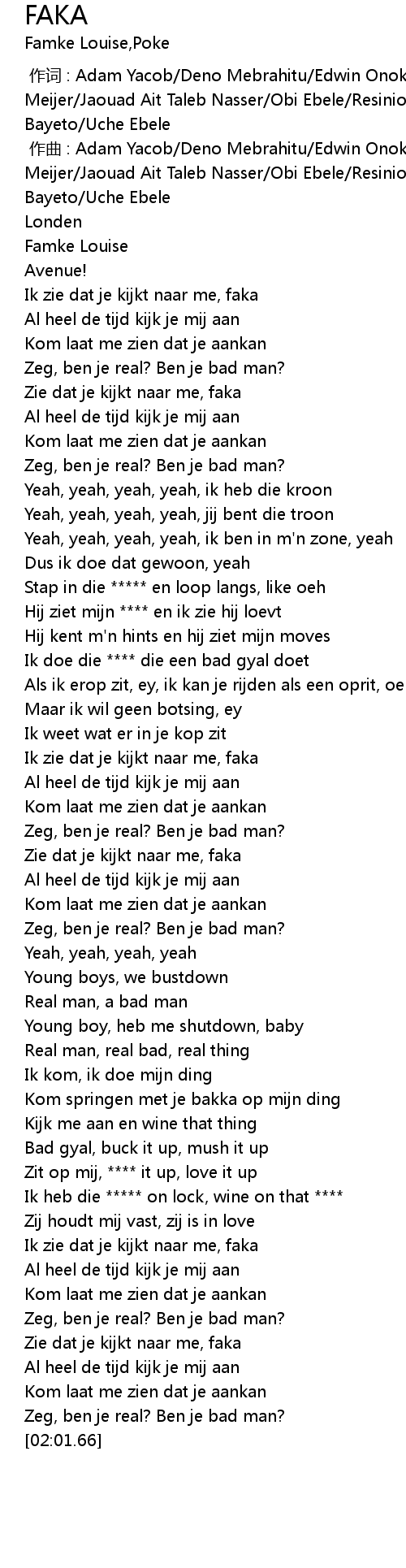 | [00:56.17] | Ik zie dat je kijkt naar me, faka |