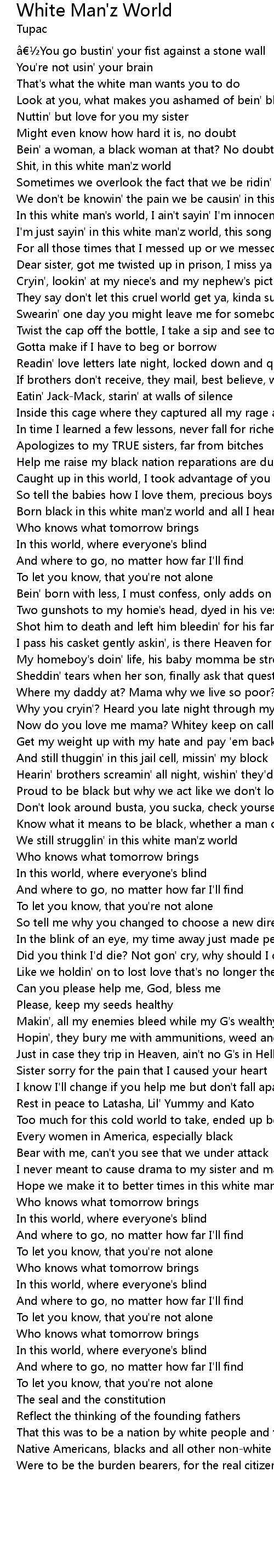 | I'm just sayin' in this white man'z world, this song is for y'all | |