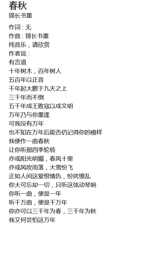 | wǒ biàn zuò yī qǔ chūn qiū | |