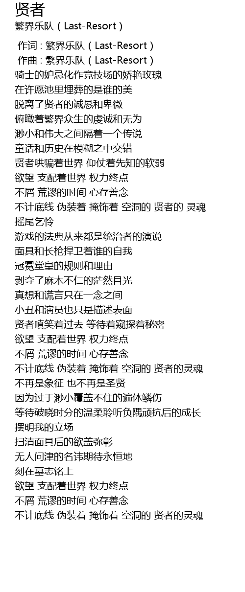 | [00:01.000] | 作曲 : 繁界乐队(Last-Resort) |