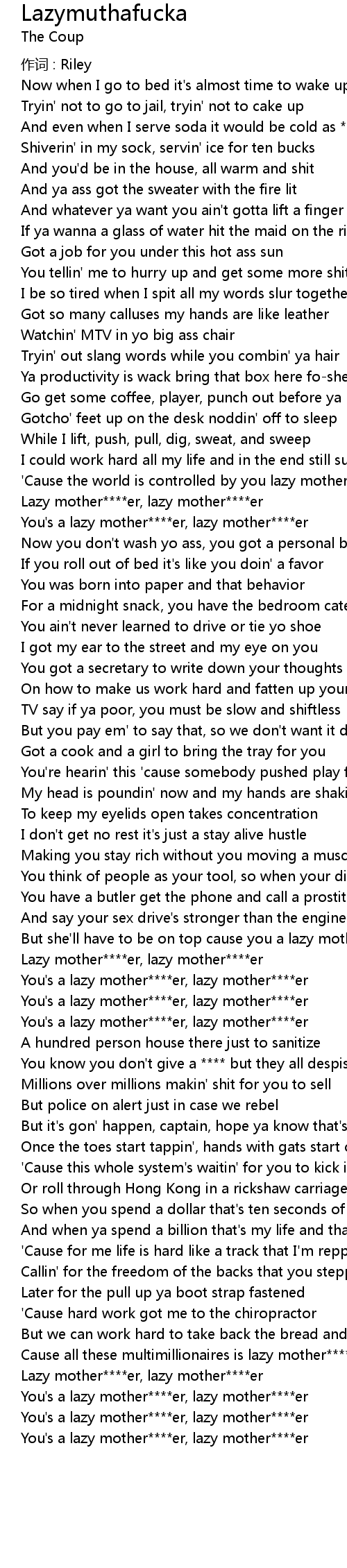 | You's a lazy mother****er, lazy mother****er | |