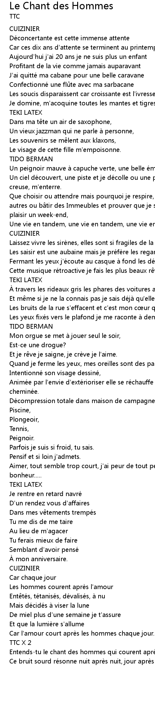 | Entendstu le chant des hommes qui courent apre s l' amour nbsp? | |