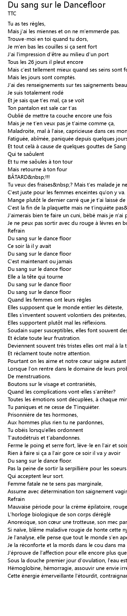 | Pourtant on les aime et notre c ur saigne autant que leur entrejambe | |