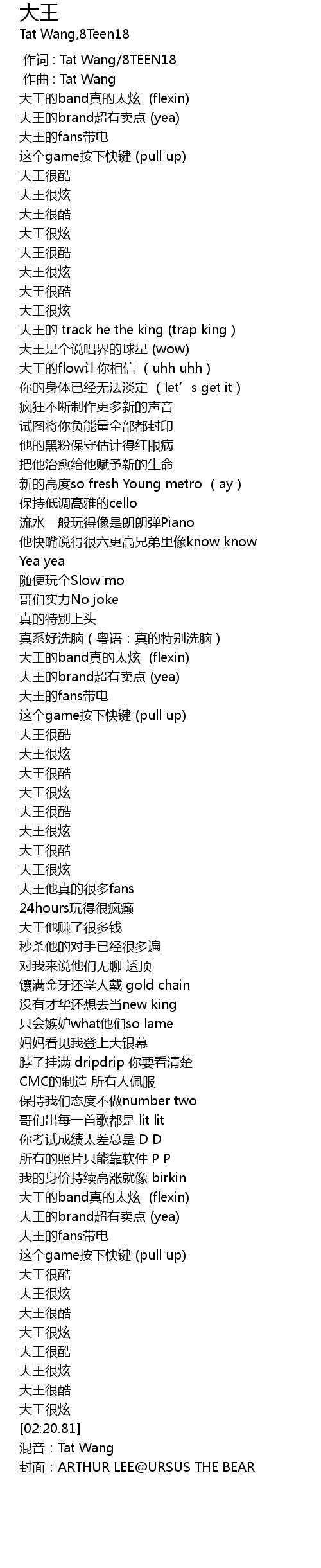 | [02:01.68] | 大王的band真的太炫 (flexin) |