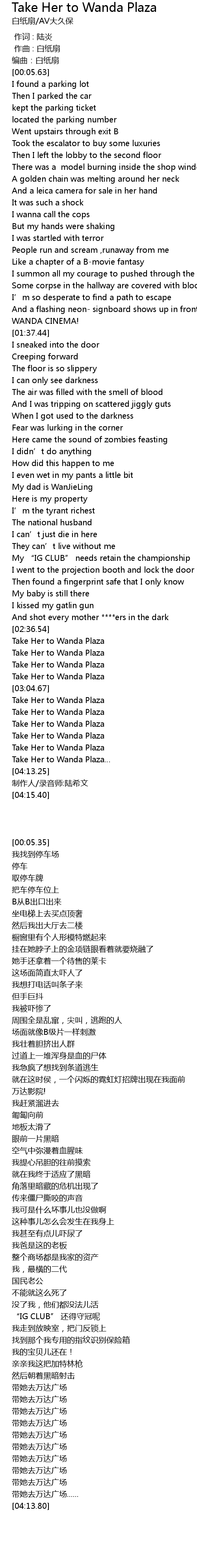 | [04:08.73] | Take Her to Wanda Plaza… |
