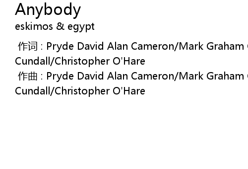 | [00:00.00-1] | 作词 : Pryde David Alan Cameron/Mark Graham Compton/John Cundall/Christopher O'Hare |