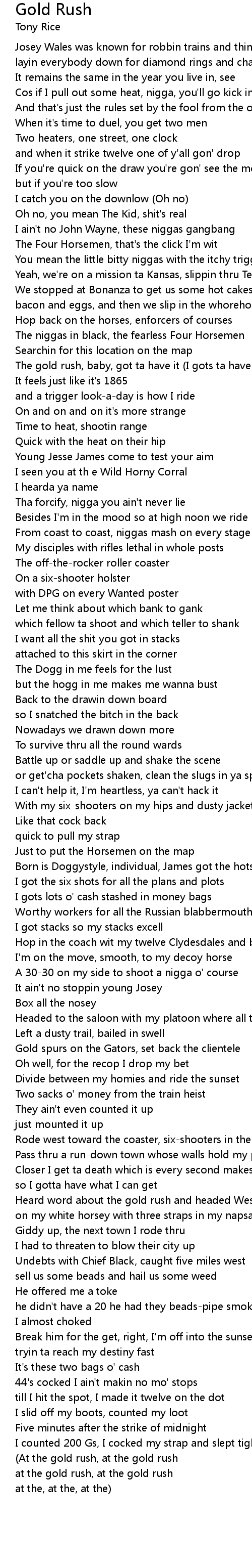 The gold rush, baby, got ta have it (I gots ta have it) |