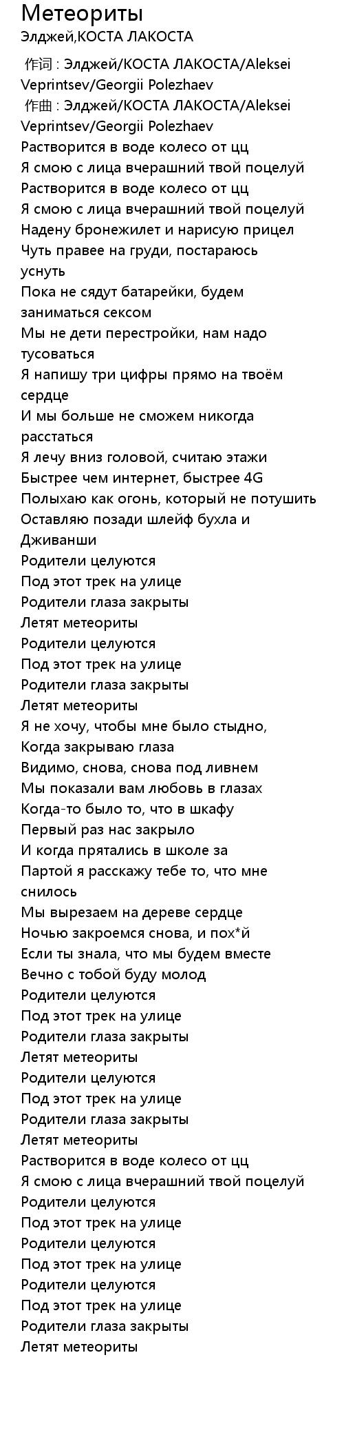 [00:01.00] 作曲 : Элджей/КОСТА ЛАКОСТА/Aleksei Veprintsev/Georgii Polezhaev