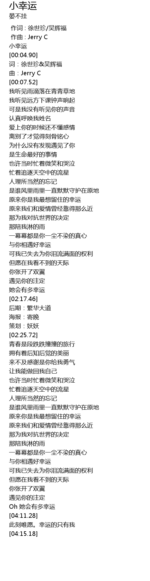 | [00:01.76] | xiǎo xìng yùn |