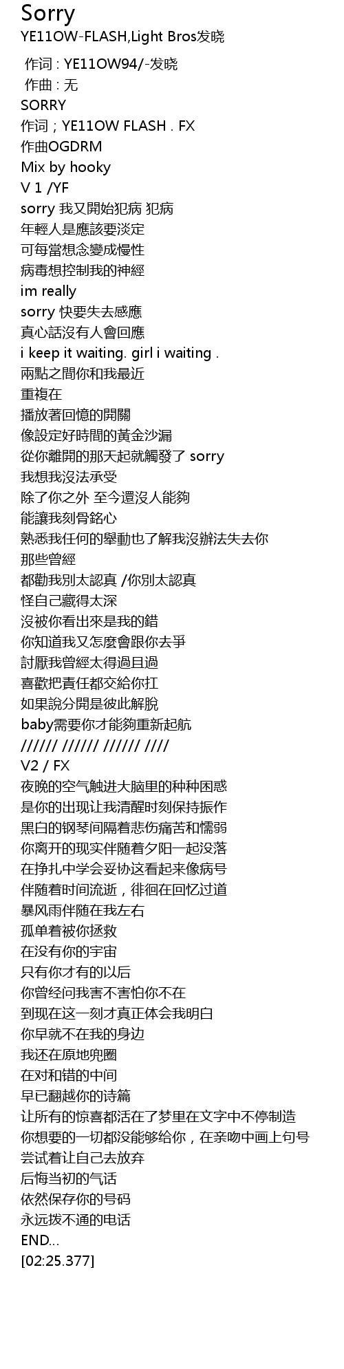 | [00:04.515] | 作词;YE11OW FLASH . FX |