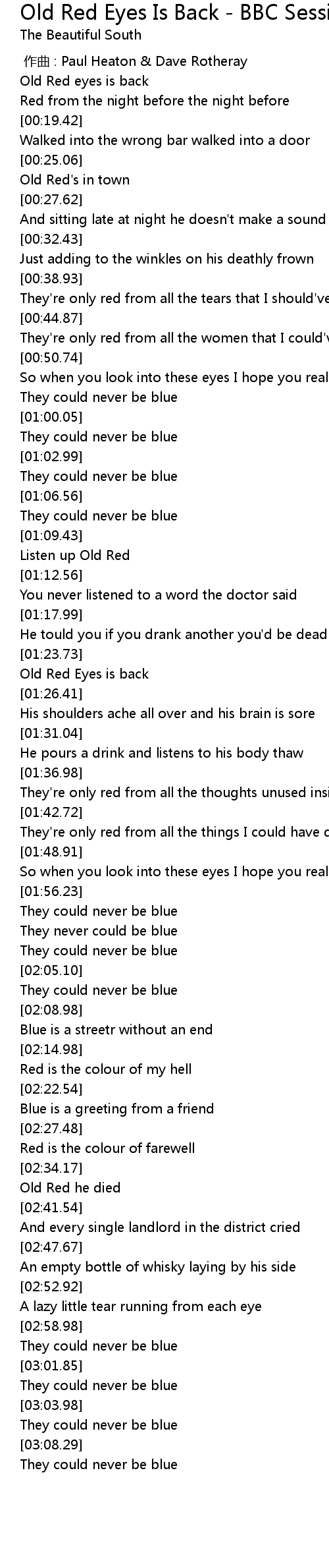 | [02:59.98] | They could never be blue |