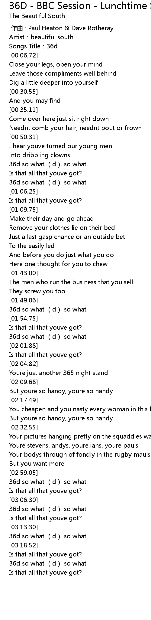 | [00:00.00] | 作曲 : Paul Heaton & Dave Rotheray |