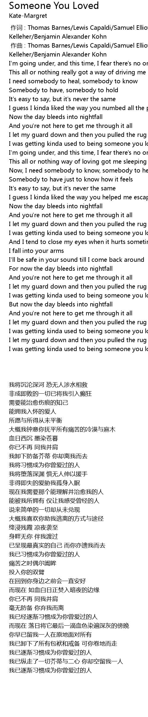 | [02:34.41] | I was getting kinda used to being someone you loved |