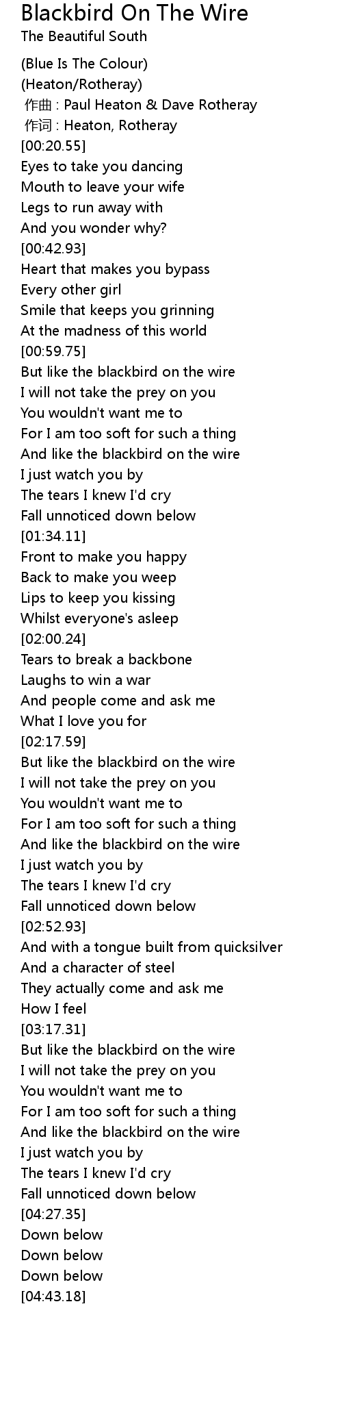| [02:17.65] | But like the blackbird on the wire |