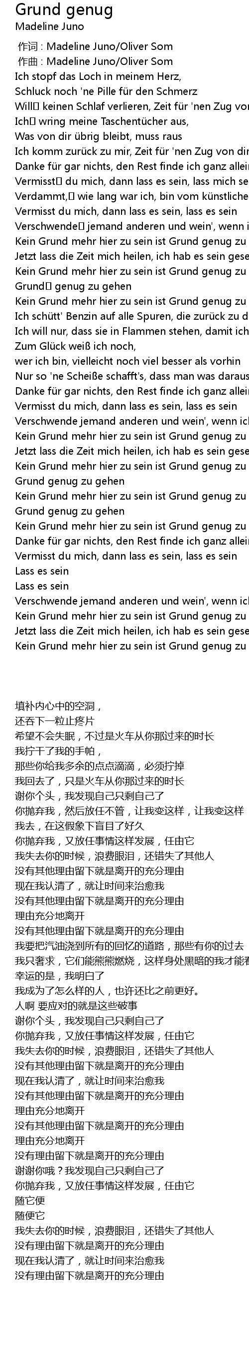 | [01:49.29] | Kein Grund mehr hier zu sein ist Grund genug zu gehen |