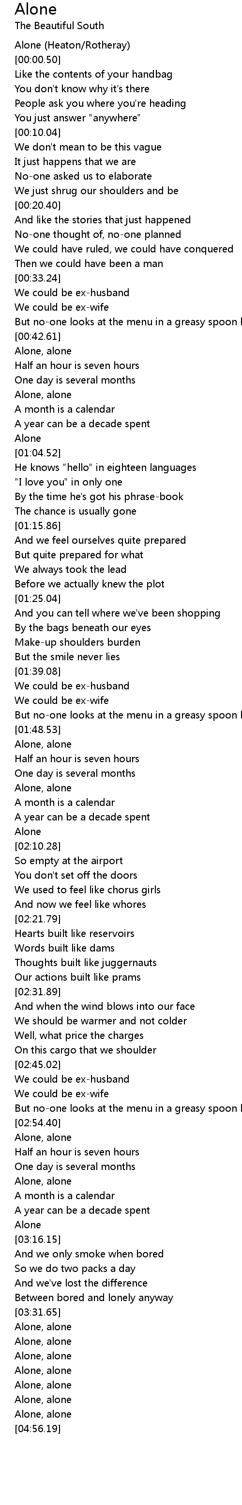 [00:00.00] Alone (Heaton/Rotheray)
