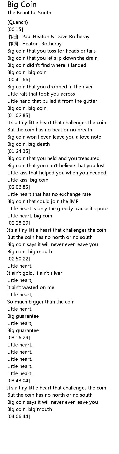 | [02:29.06] | It's a tiny little heart that challenges the coin |