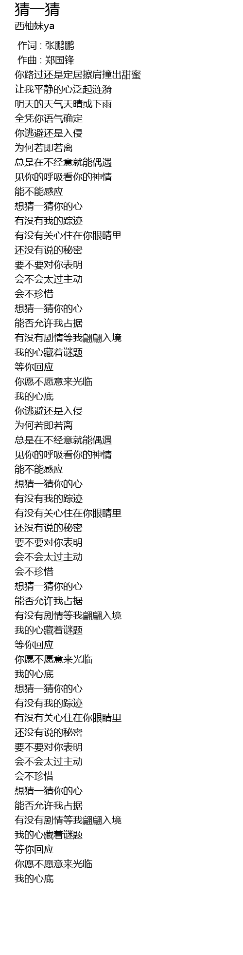 | [02:50.108] | xiǎng cāi yī cāi nǐ de xīn |