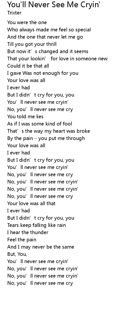 | No, you’ll never see me cry | |