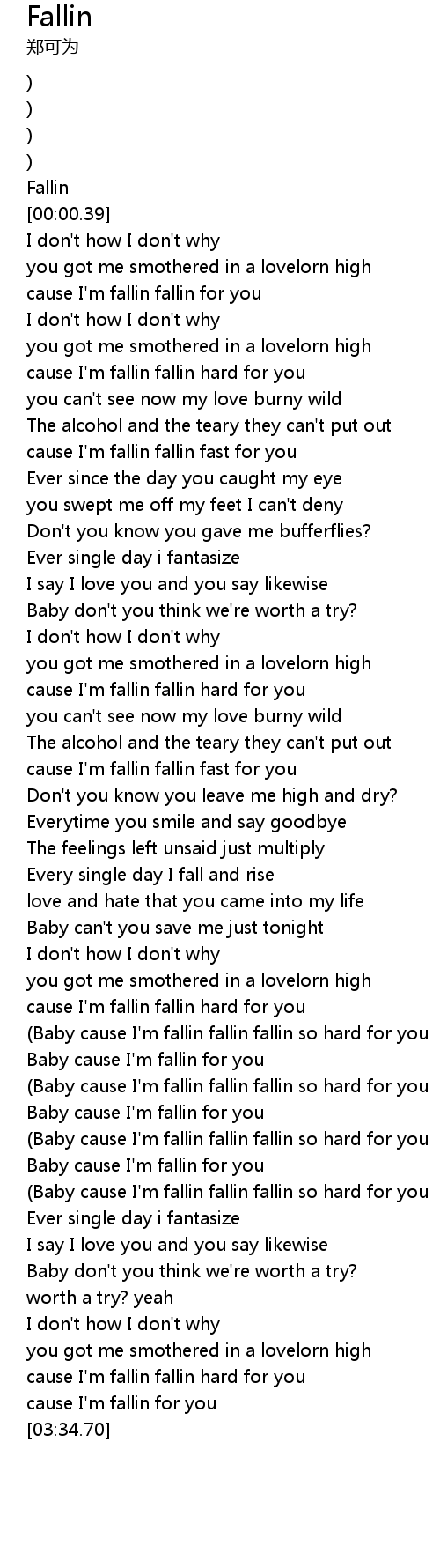 | [02:38.59] | Baby cause I'm fallin for you |