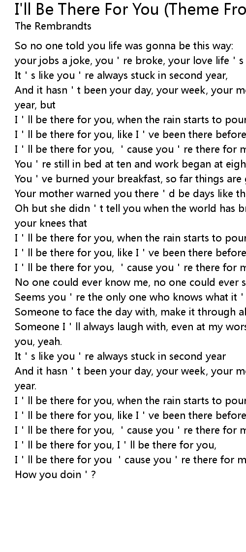 | [00:39.690] | I'll be there for you, 'cause you're there for me too. |